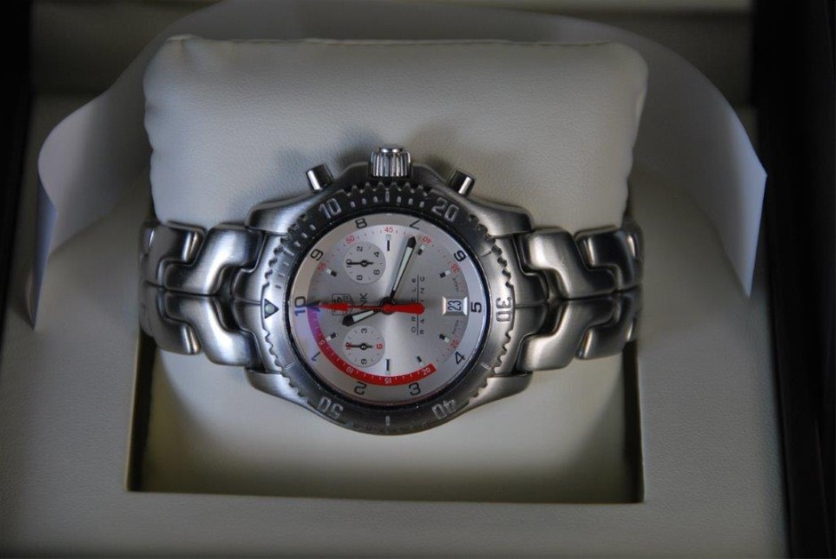One Authentic Gents Limited Edition Tag Heuer ORACLE RACING 1/10th Chronograph Link ``Limited Edition`` Wristwatch with a Silver Dial