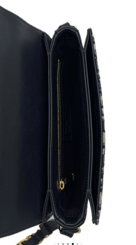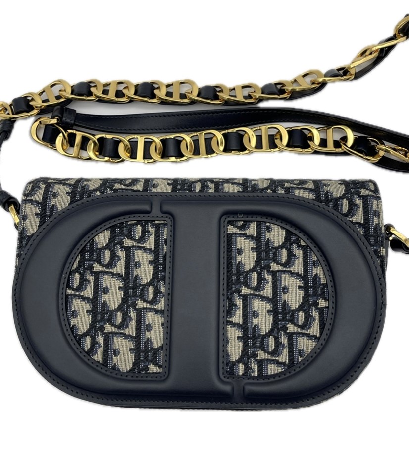 This used and preowned Dior CD Signature Bag with Strap Blue Dior Oblique Jacquard is adorned in the iconic Blue Dior Oblique Jacquard pattern. Details: Flap closure, CD-embossed signature on the front, CD signature chain with leather, Interior patch pocket.