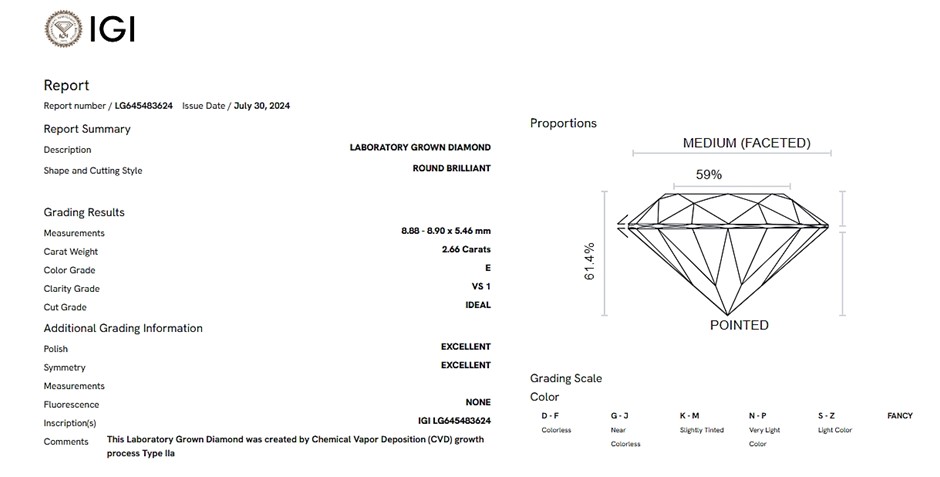 2.66 Carats E/VS1 Lab Grown Diamond - IGI Certified