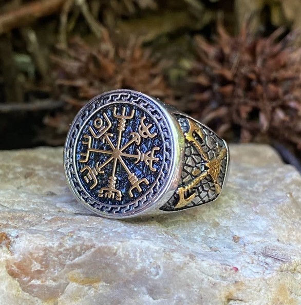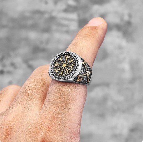 Vegvisir Compass Ring - Stainless Steel And Gold Colour Norse Viking Symbol
