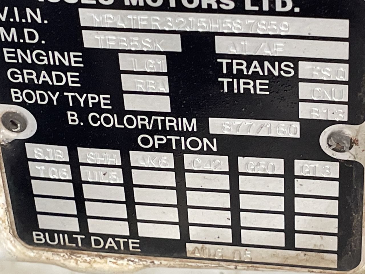 (SN:MPATFR32J5H587859) (119420-17)