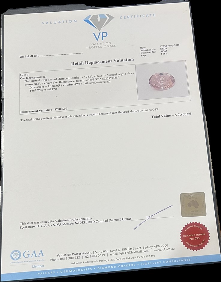 0.17 Carat Brown Pink Argyle Australian Diamond Certified