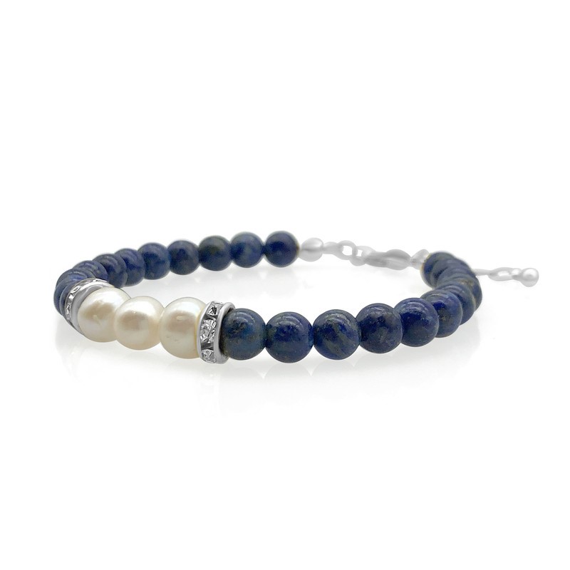 7-8mm Pearl & Lapis Lazuli with Real Platinum Plated Bracelet