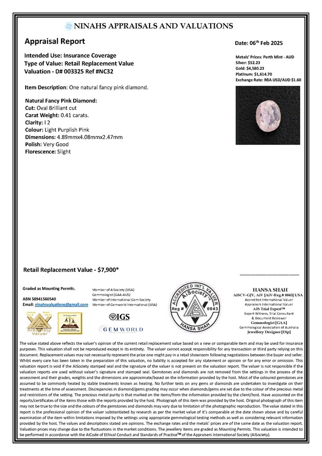 0.41ct Natural fancy pink diamond