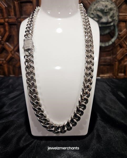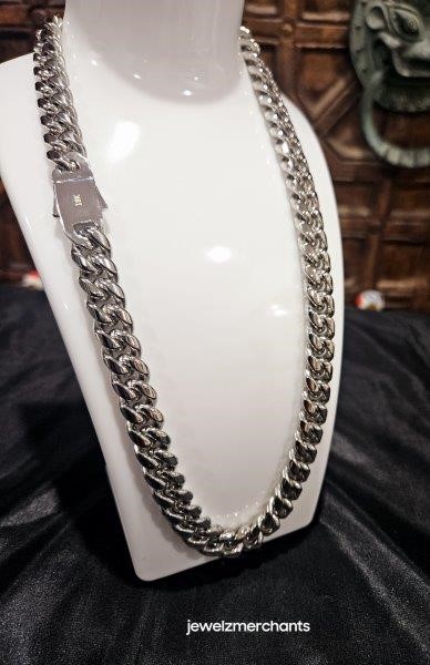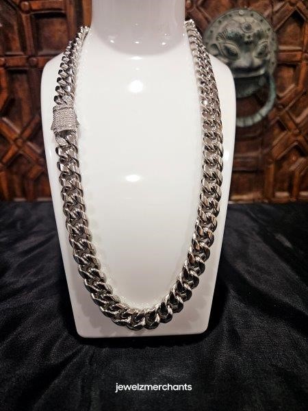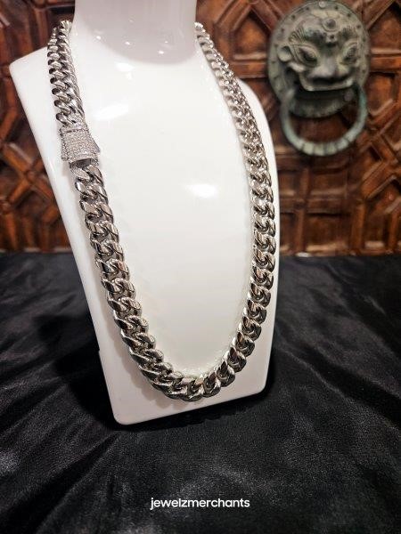 18k White Gold Filled Cuban Chain stamped(18K)-45cm-Quality Guarantee