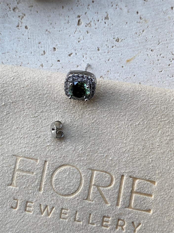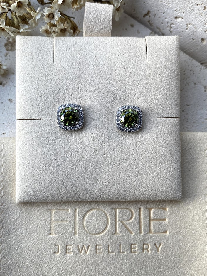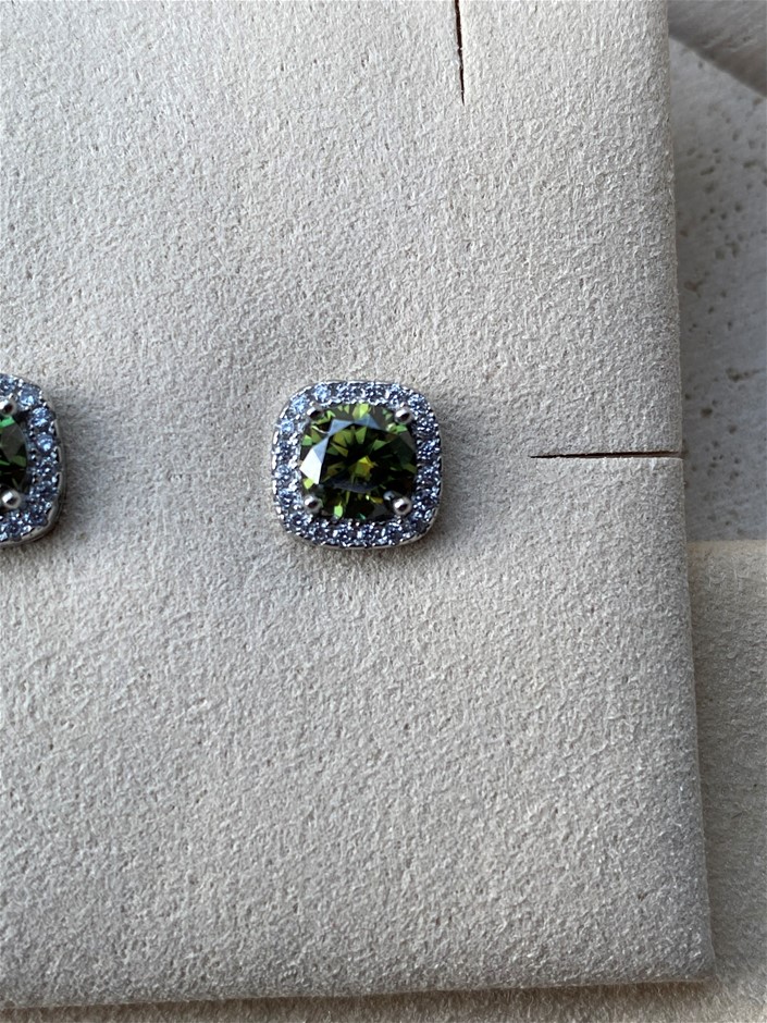 Certified 1ct Green Moissanite Square Halo Stud Earrings Sterling Silver