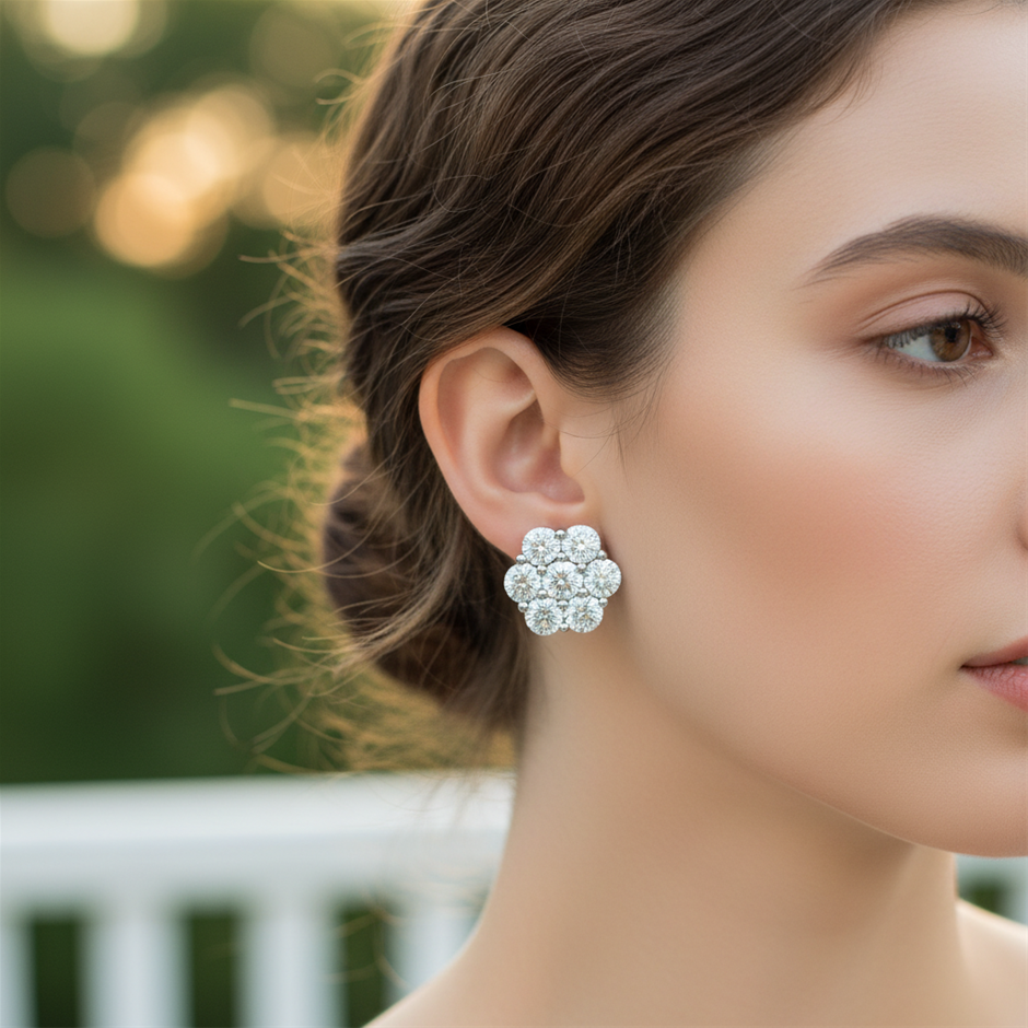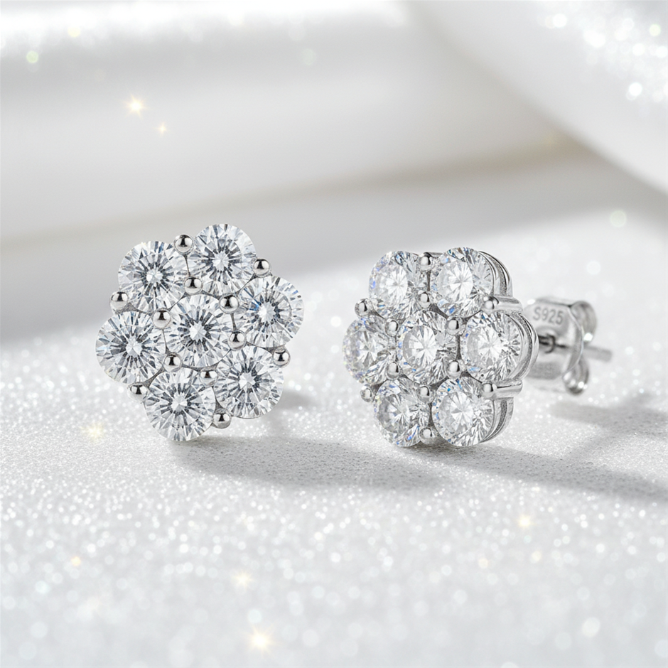 • Discover our Moissanite Diamond White Brilliant Cut earring, crafted with high-quality solid 925 sterling silver and plated in 18K real white gold. This luxurious piece, stamped S925, comes with a GRA Certificate and is 100% guaranteed to pass the diamond tester.