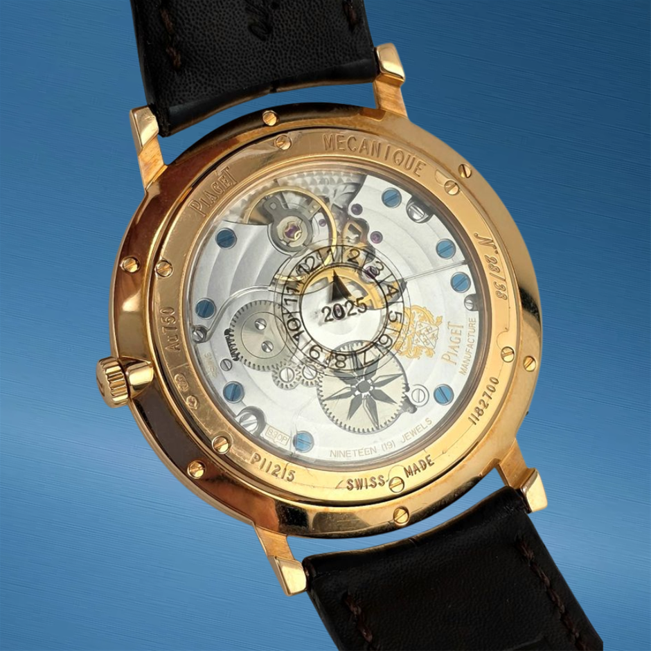 A rare and intricately crafted Piaget artistic timepiece, offering exceptional guilloché workmanship, refined Altiplano design, and strong collector appeal within the Mythical Journey series.