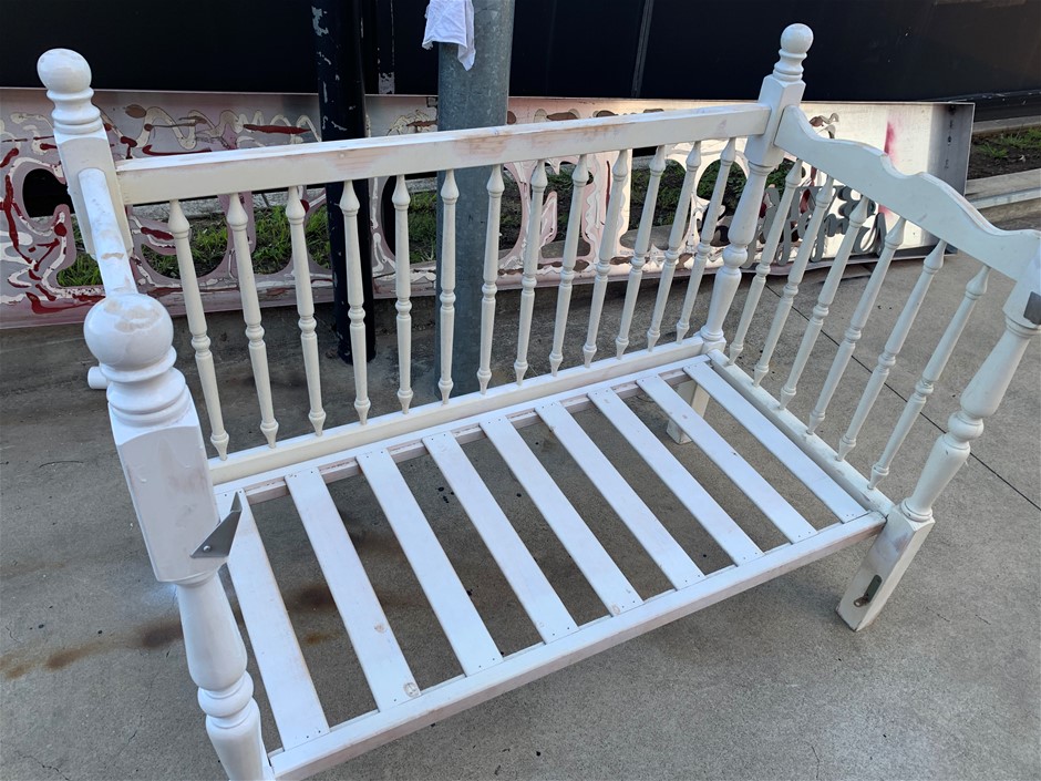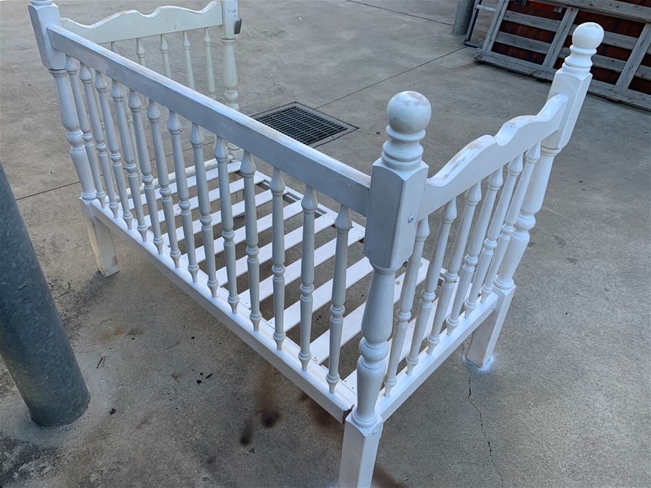 Baby Cot White Antique With Slide Down Front Barrier