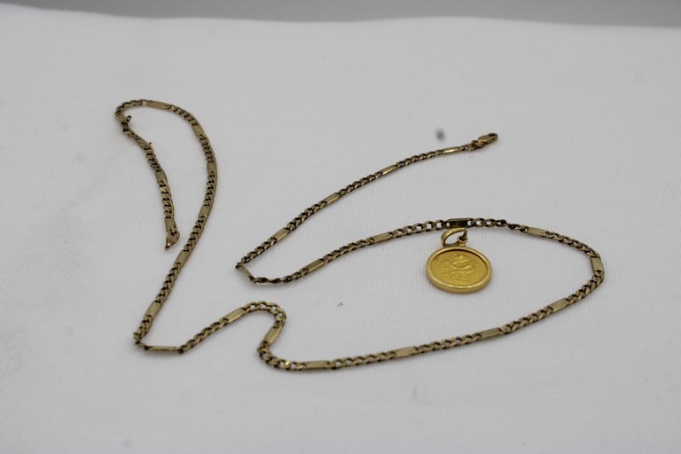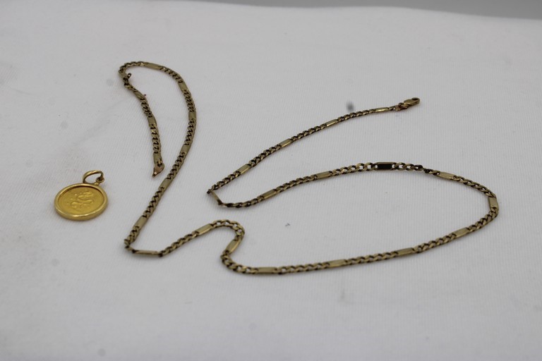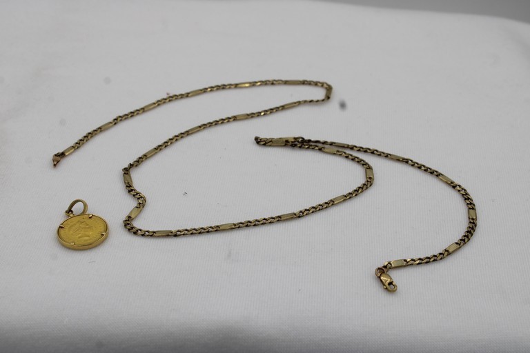 1 x Stamped 9ct Yellow Gold, Chain Necklet And Coin Pendant