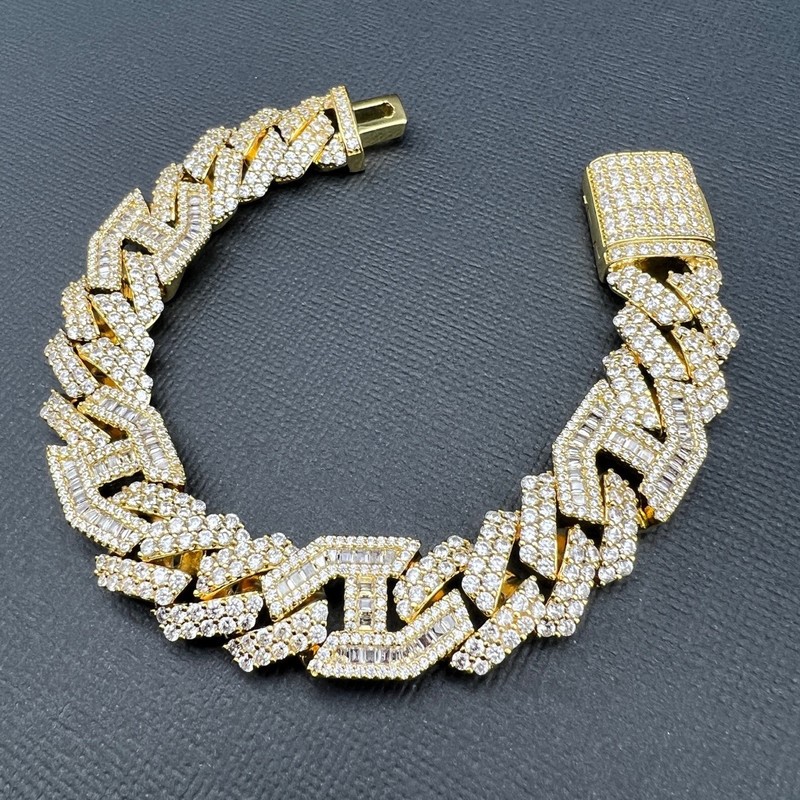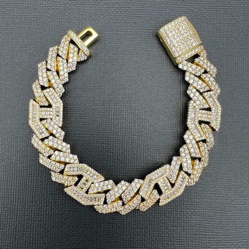 Opulent Galleria - 18K Gold-Filled Cuban Chain Bracelet with Simulated Diamonds, 16MM Wide – 20.3cm