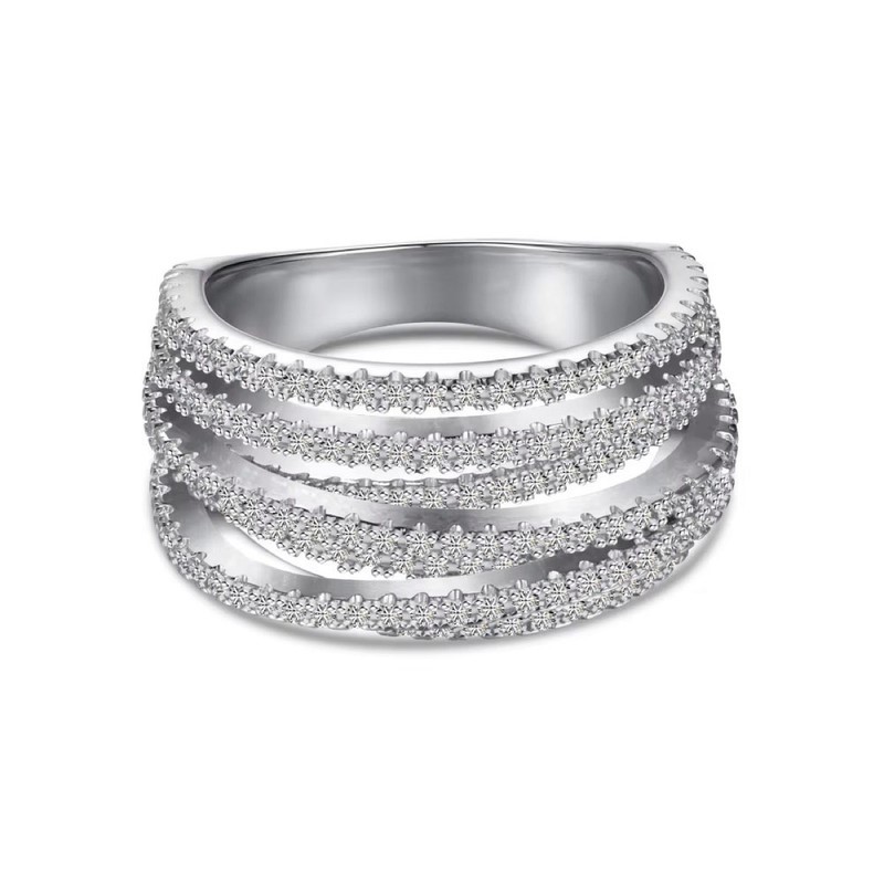 Simulated Diamond Multi Row 925 Sterling Silver Band Ring - Size 8