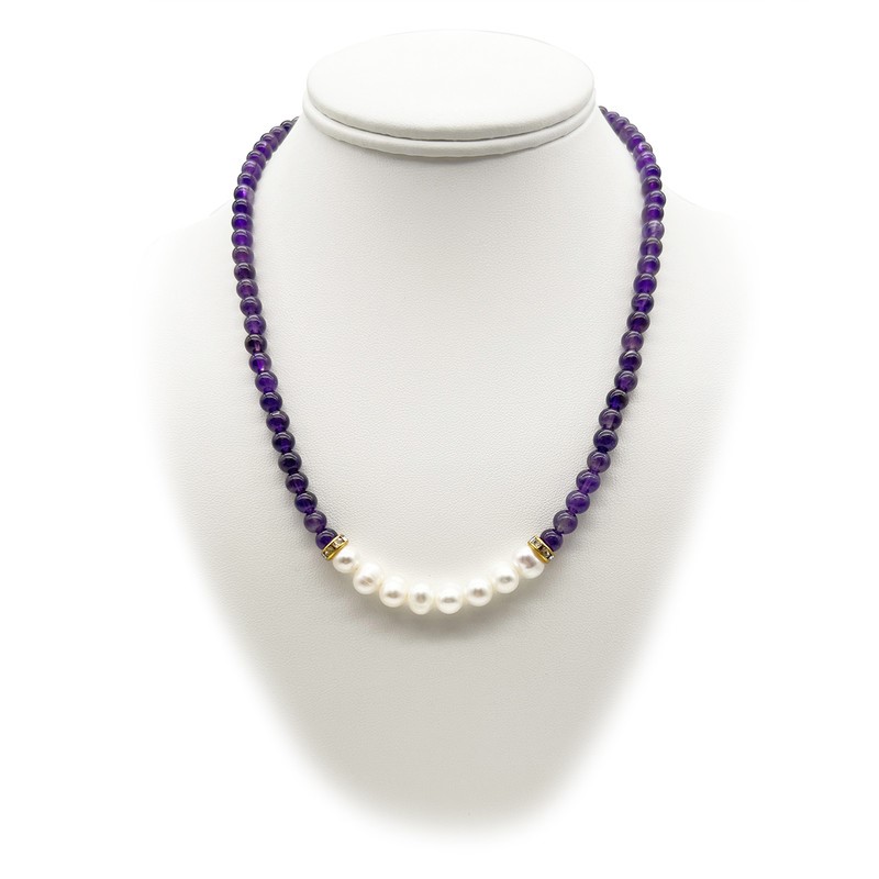 Natural 7-8mm Freshwater Pearl & Amethyst with Real 18k Gold Plated Necklace.