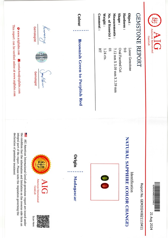 | Part of Sale | AIG Certified Gemstones Collection | ||||