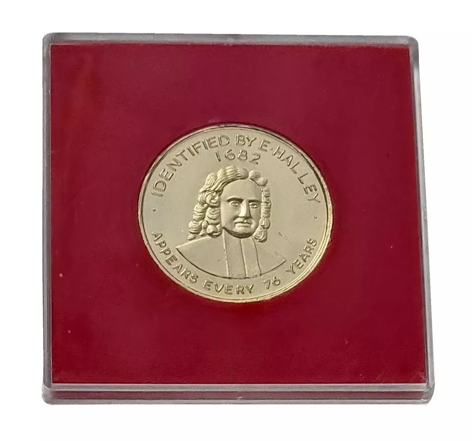 Australia: 1986 Halley`s Comet gold gilt cased medal medallion rare