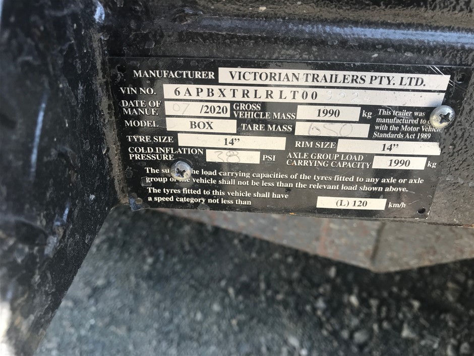 2020 Victorian Trailers 8 x 5 Box Tandem Box Trailer