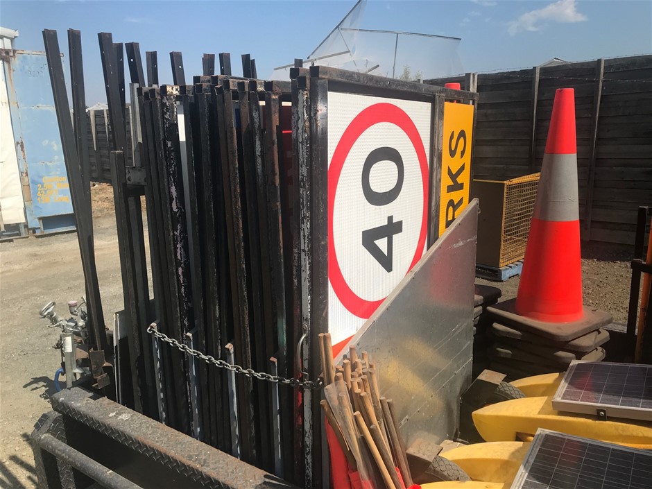 • Other Comments: Includes various traffic management equipment, cones, steel sign frames and stands, Various core flute signs 2 x solar portable traffic lights