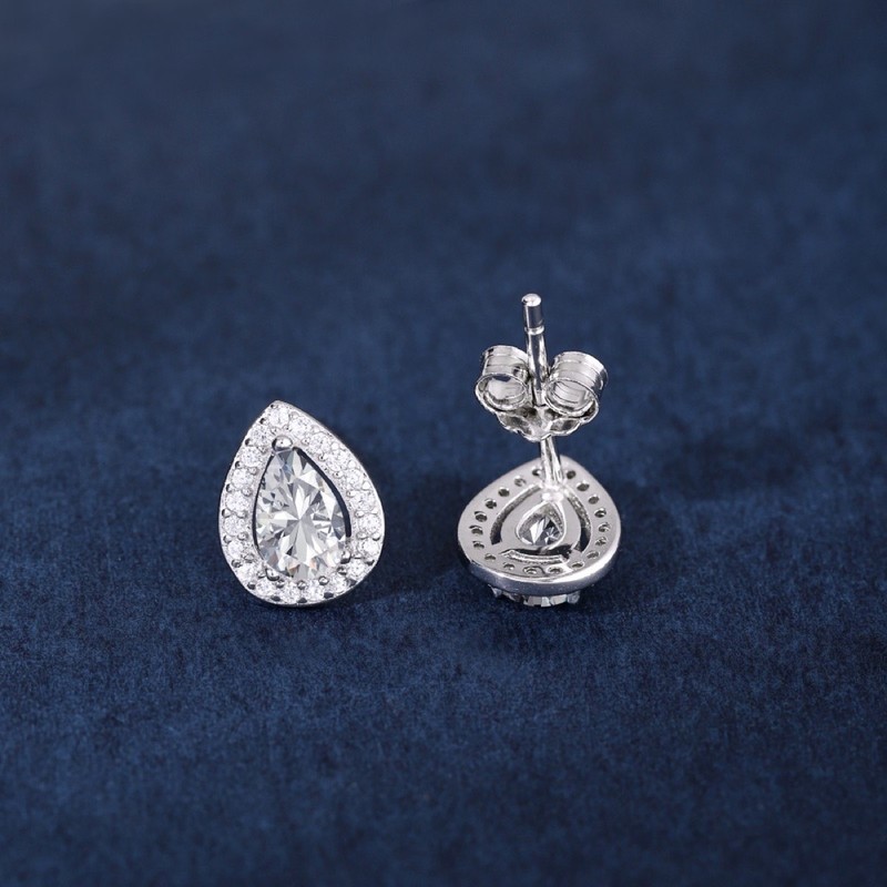 Pear 925 Sterling Silver Simulated Diamonds Stud Earrings