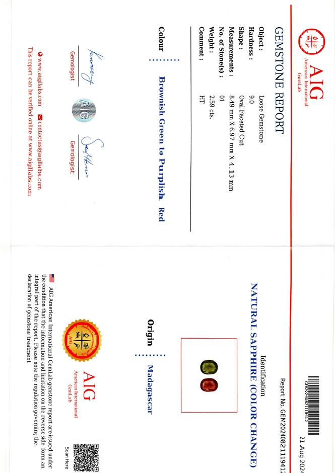 | Part of Sale | AIG Certified Gemstones Collection | ||||