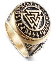 Two-Tone Valknut Runes Circle Ring in 18kt triple Yellow Gold Finish