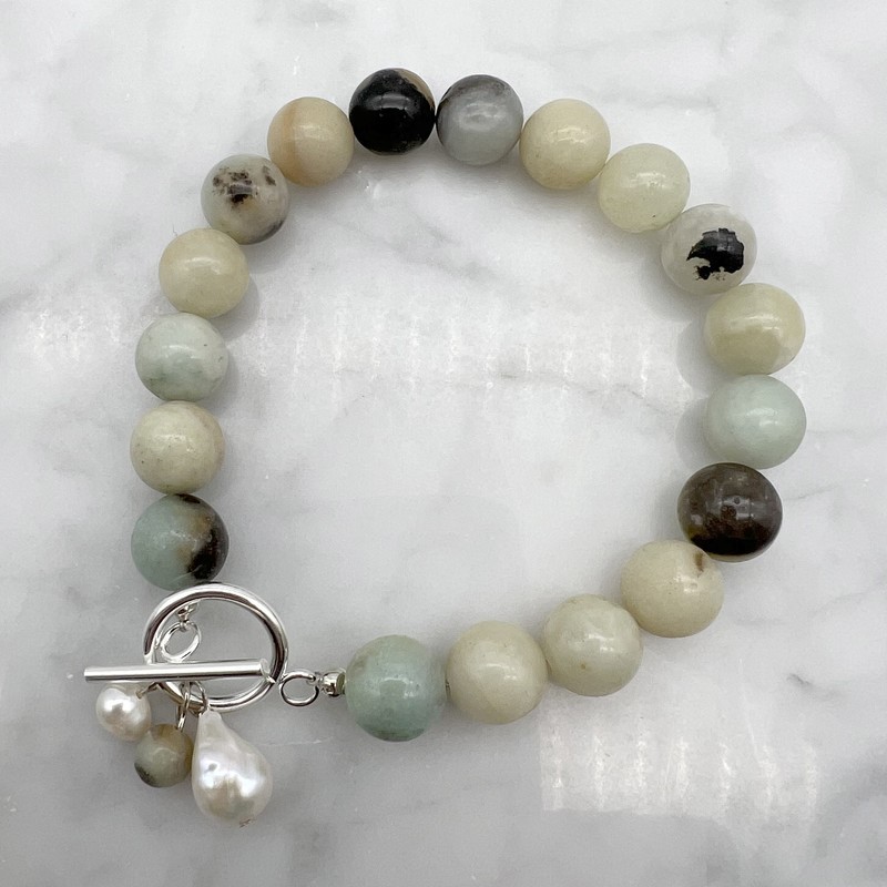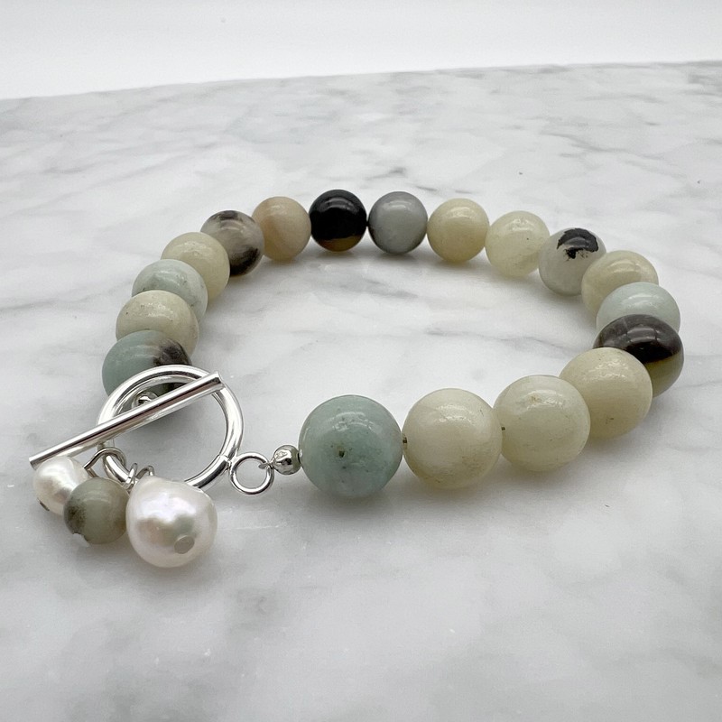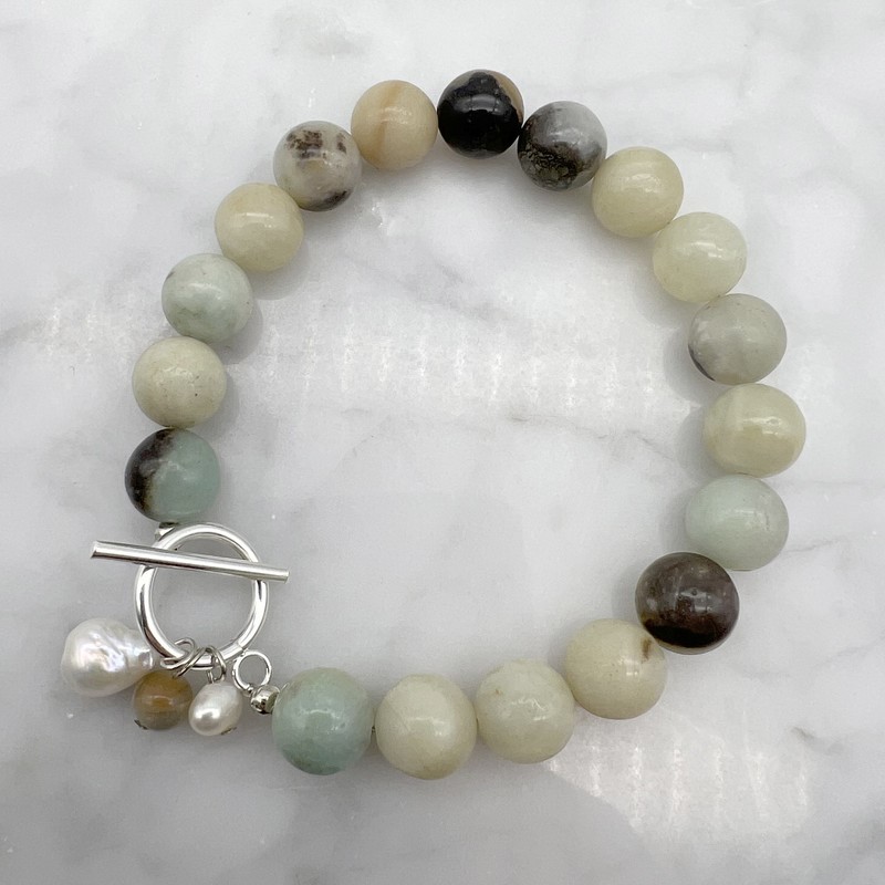 10mm Amazonite with `O` Toggle Gemstone Beaded Bracelet.