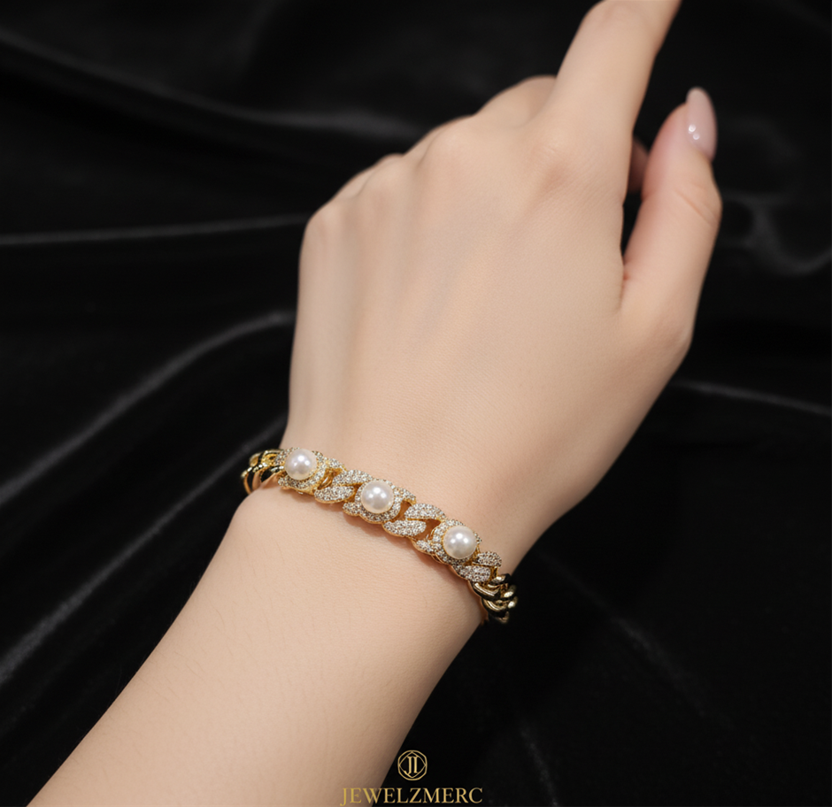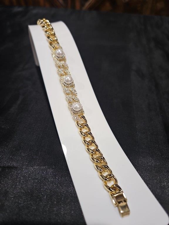 18K/Italy Solid Gold Filled Bracelet -(stamped 18K/Italy) with Fresh Pearl -Warranty Quality