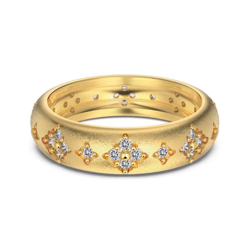 Simulated Diamonds 18K Gold Filled 925 Silver Band Ring - Size 8