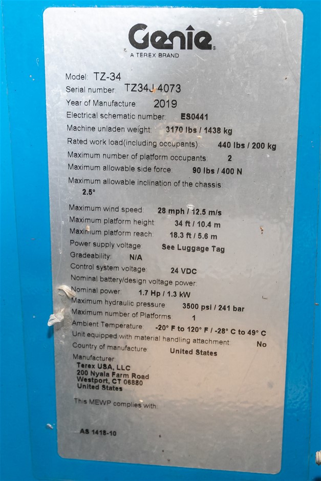 2020 Genie TZ-34/20 Towable Boom Lift