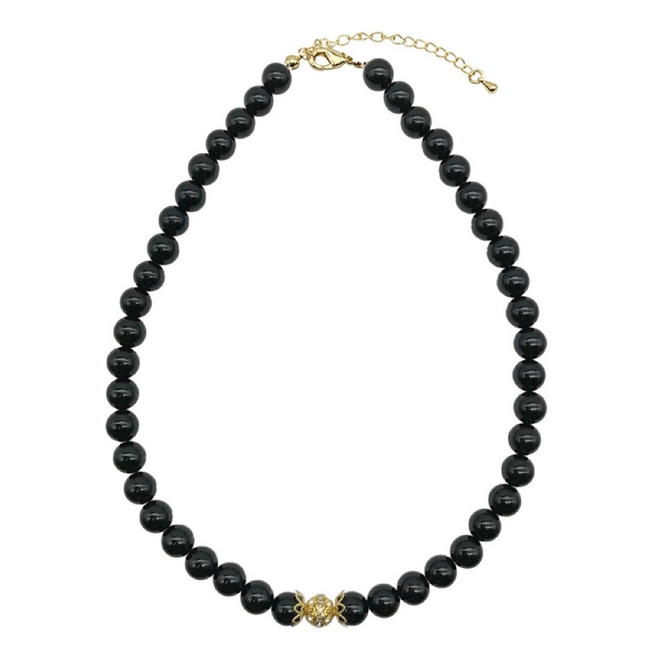 10mm Black Agate Persian Love Gold Plated Rhinestone Necklace, Bracelet & Earring Set.
