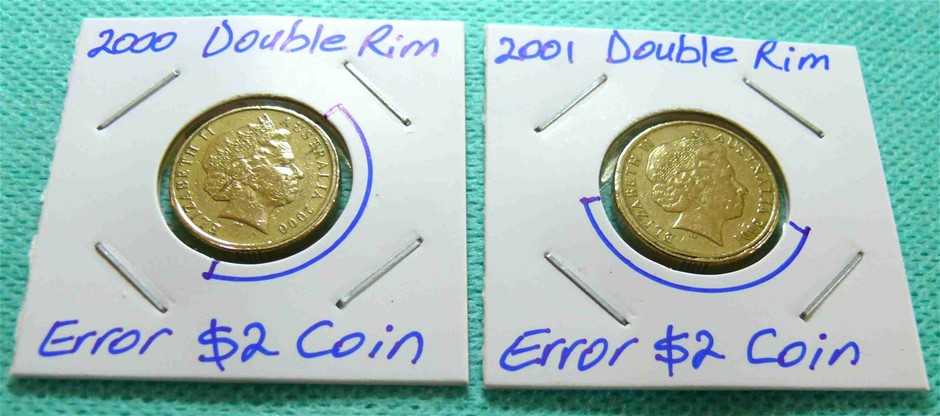 2x Error 2000 and 2001 Double Rim $2 Coins.