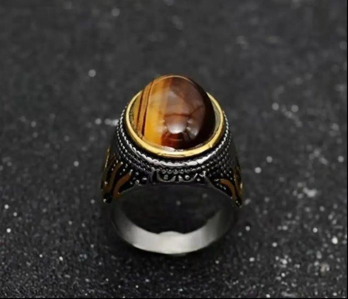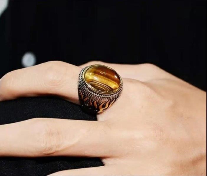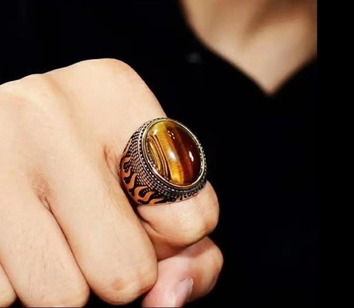 Large Vintage Middle Eastern Natural Zircon Tiger Eye Gemstone Ring