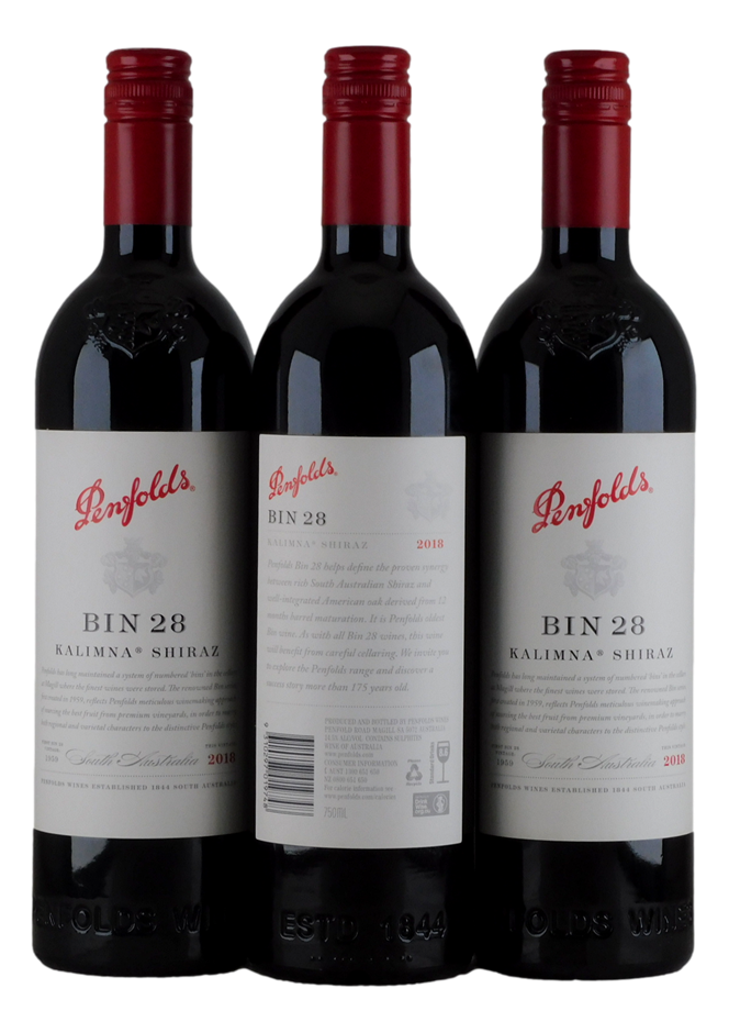 Penfolds Bin 28 Kalimna Shiraz 2018 (3x 750mL). (319551-23)