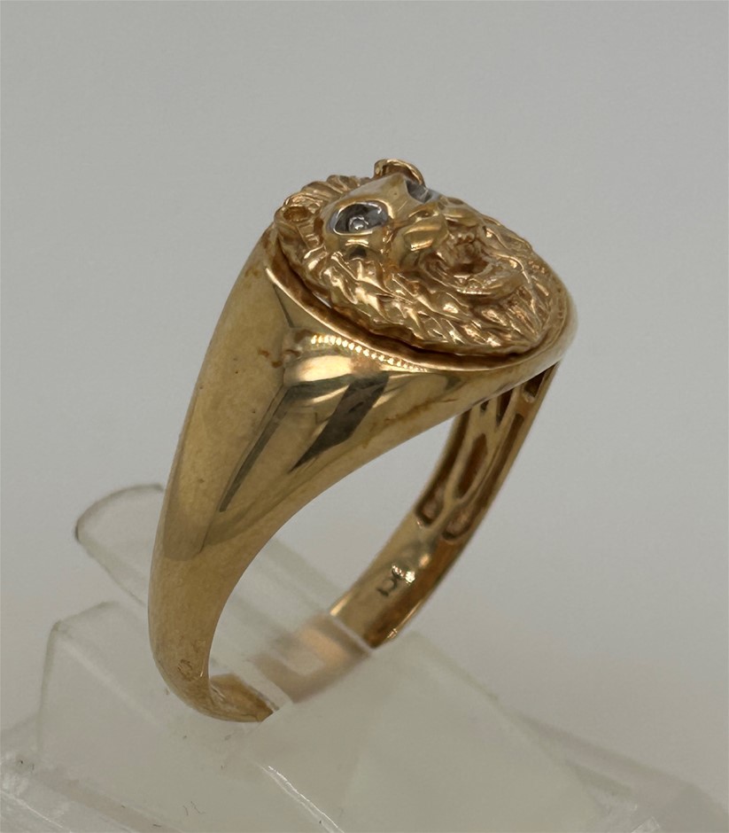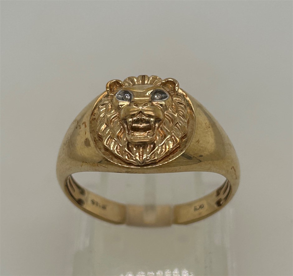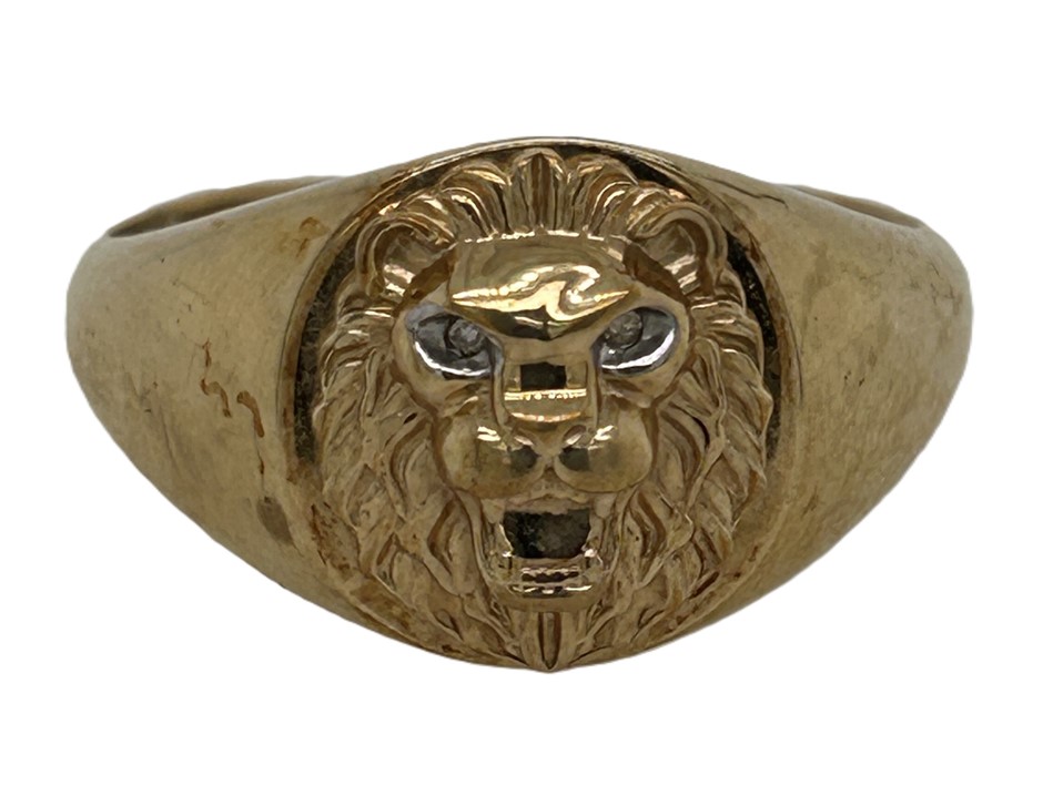 9ct yellow gold 0014ct diamond lion head ring