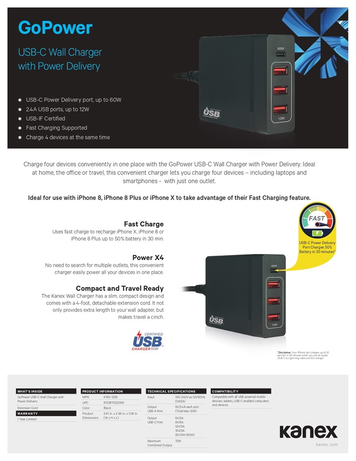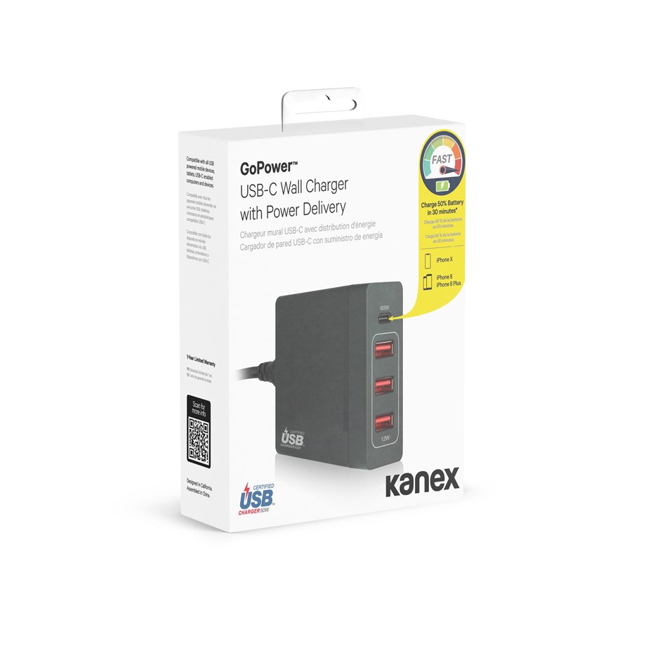 Bulk lot of 6: Kanex 72W USB-C Wall Charger with Power Delivery (322077-57)
