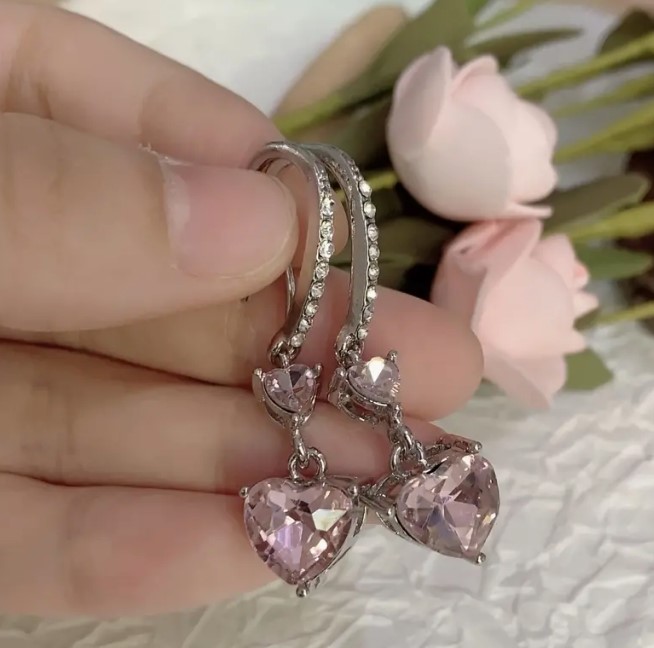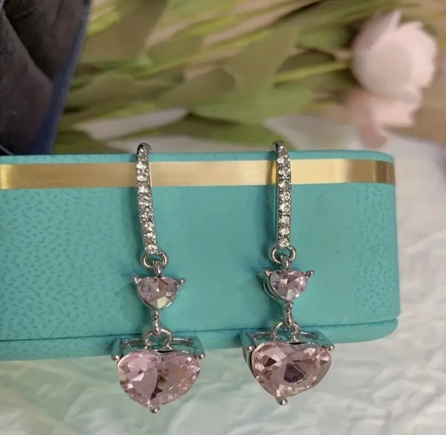 Elegant 18K White Gold Plated Simulated Pink Diamond Earrings