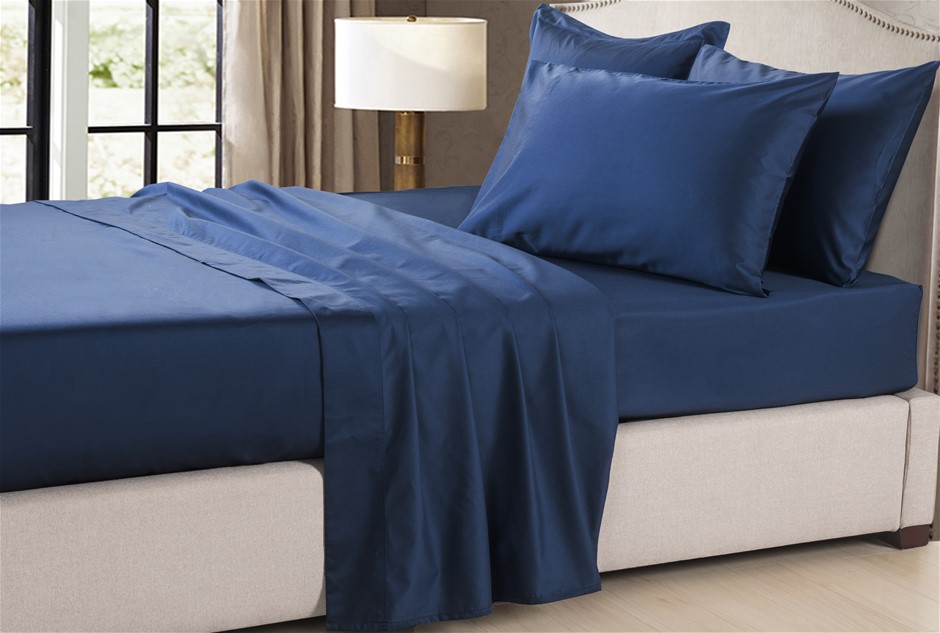 1200 Thread Count Egyptian Cotton Sheet Sheet Midnight Navy Blue Single