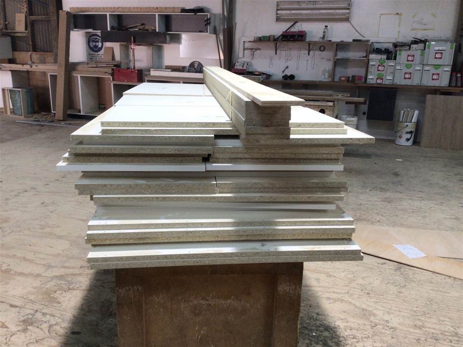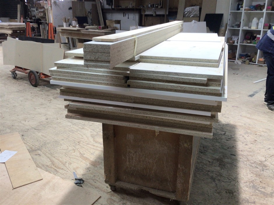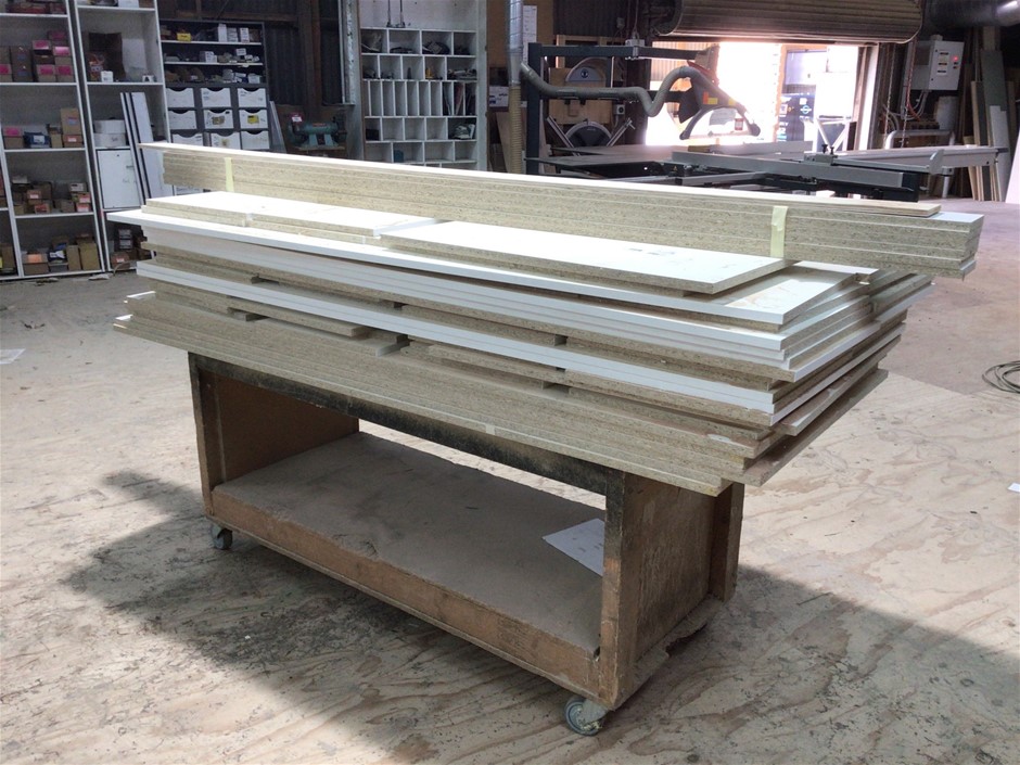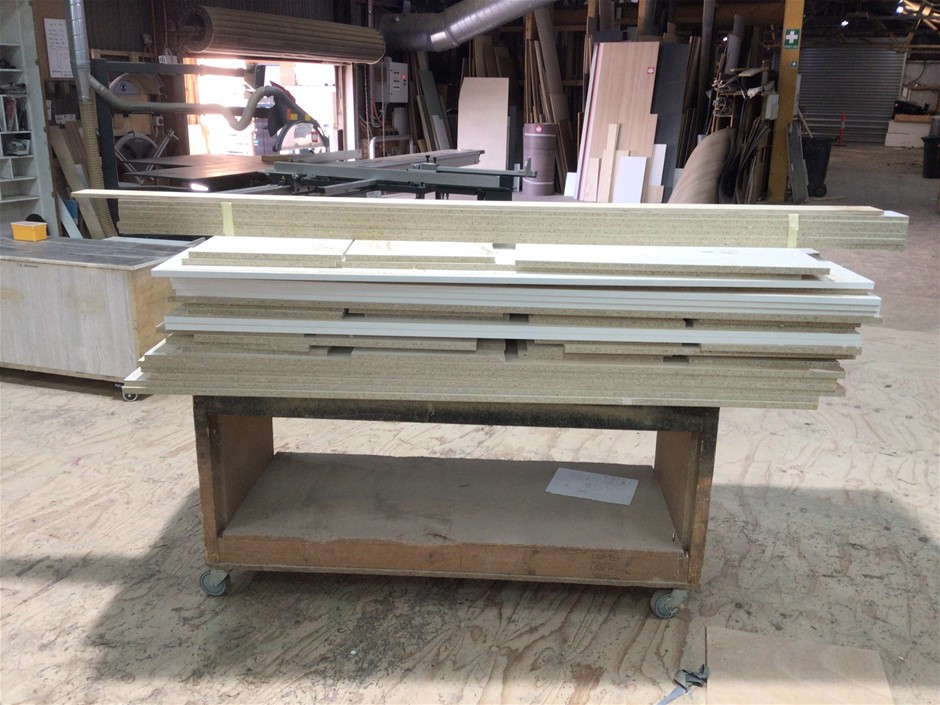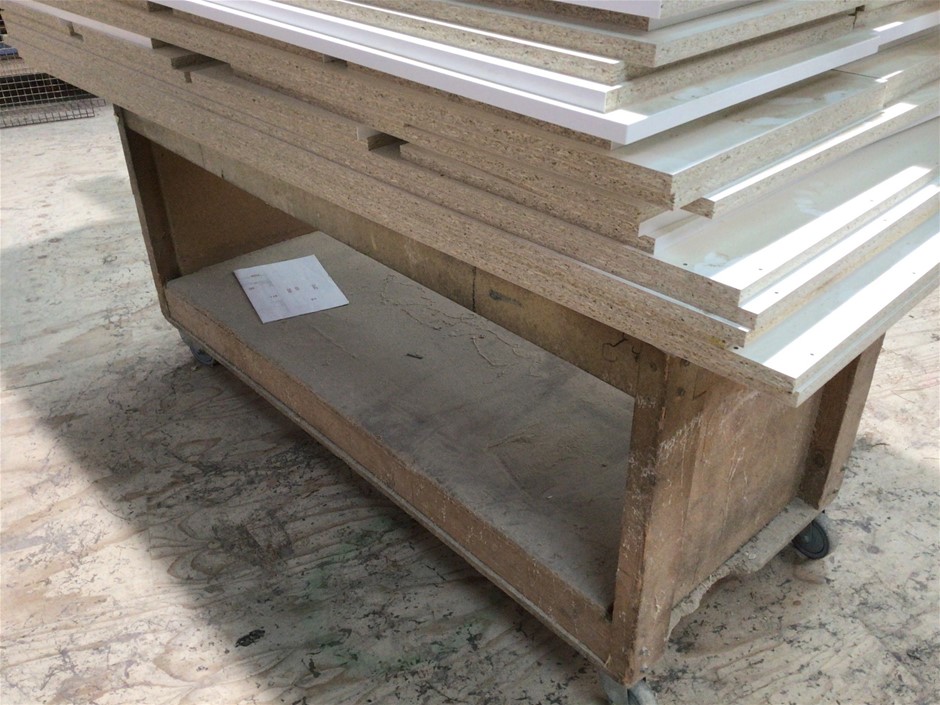 Timber fabricated trolley with contents of laminated board