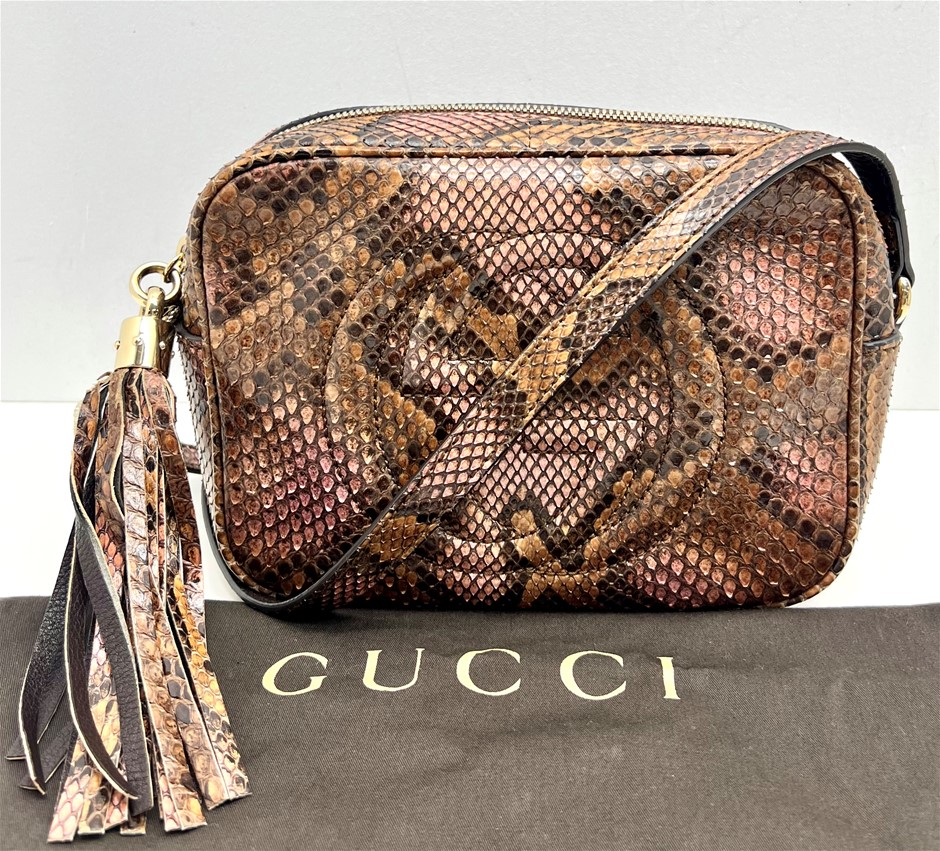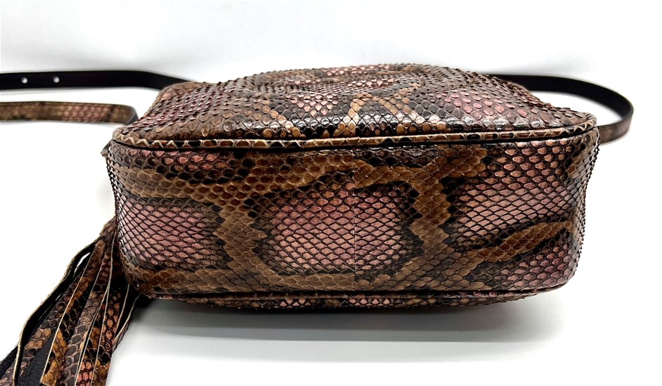 Gucci Soho python shoulder bag Signature GG on front of bag