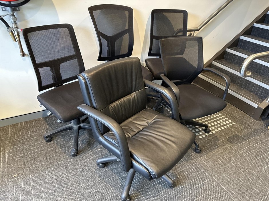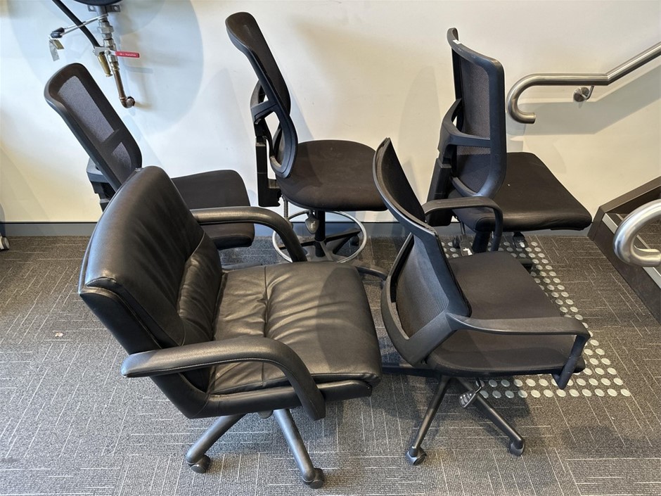Assorted Black Adjustable Office Swivel Chairs x 5