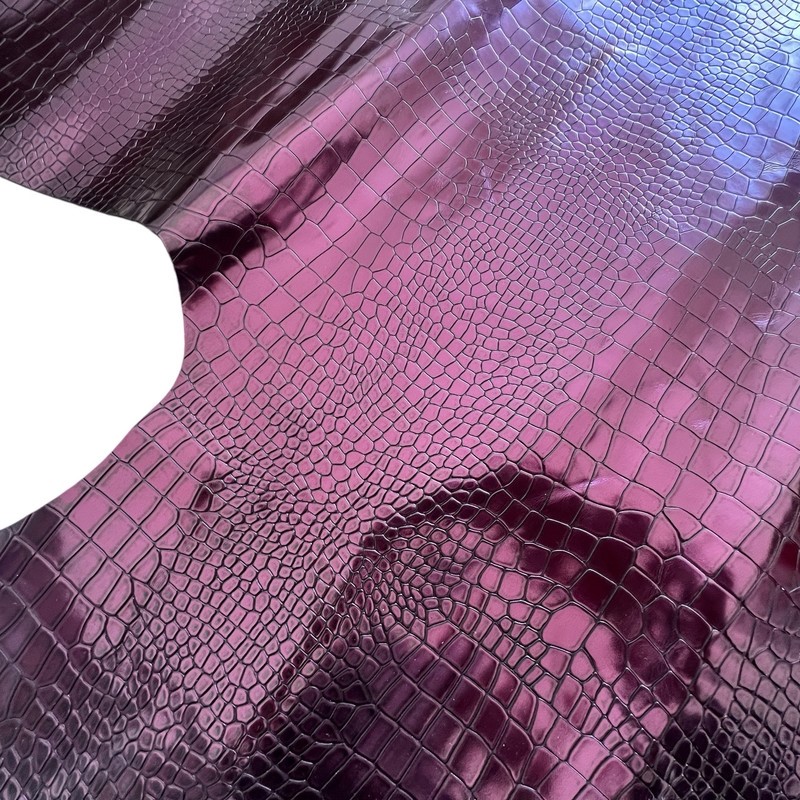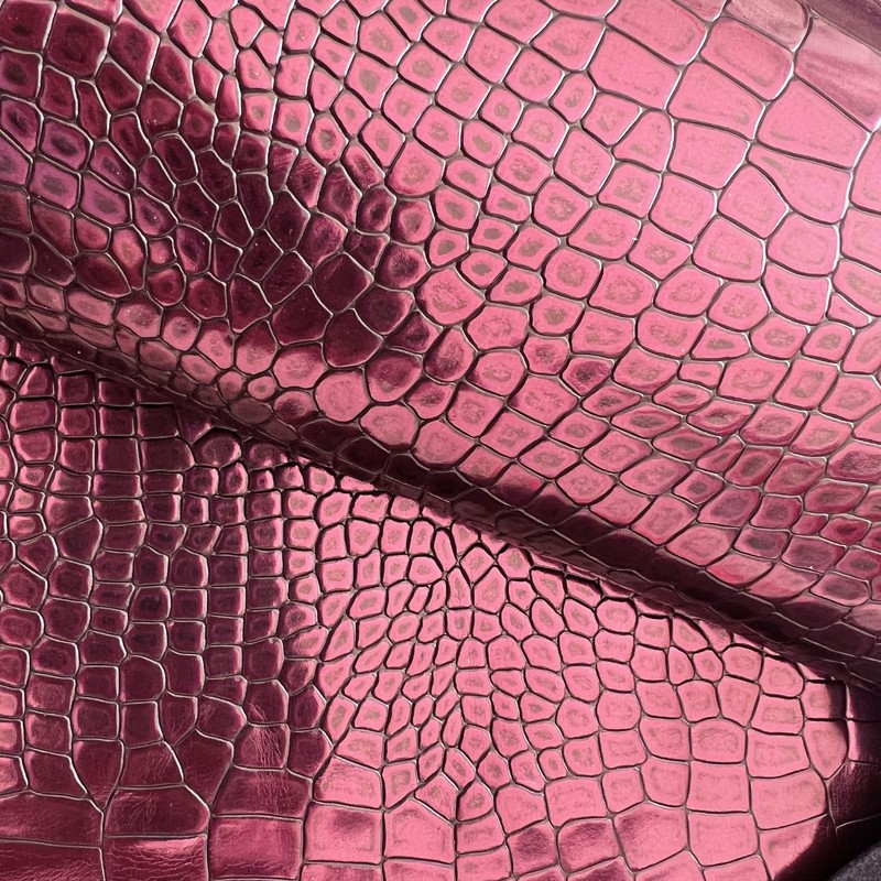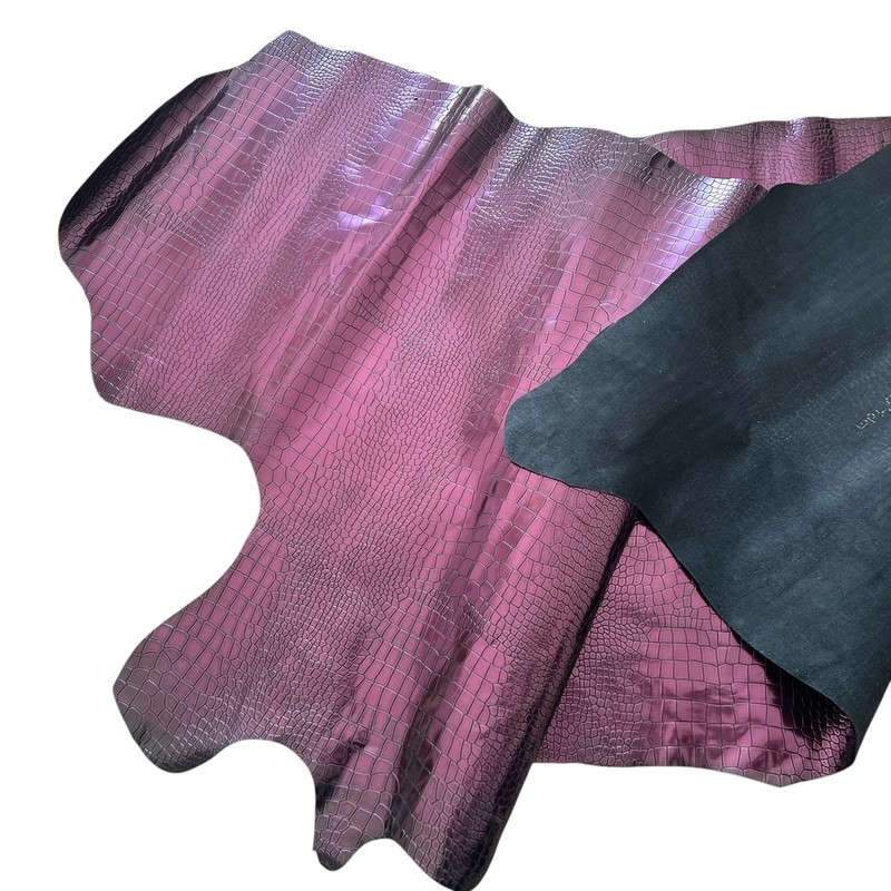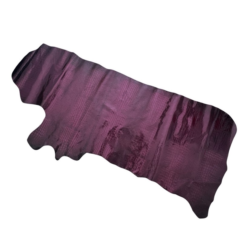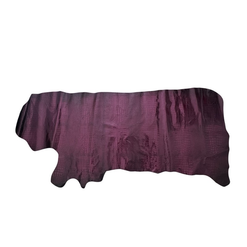7sqft Crocodile Embossed Print Reddish Purple Metallic Cow Leather Hide