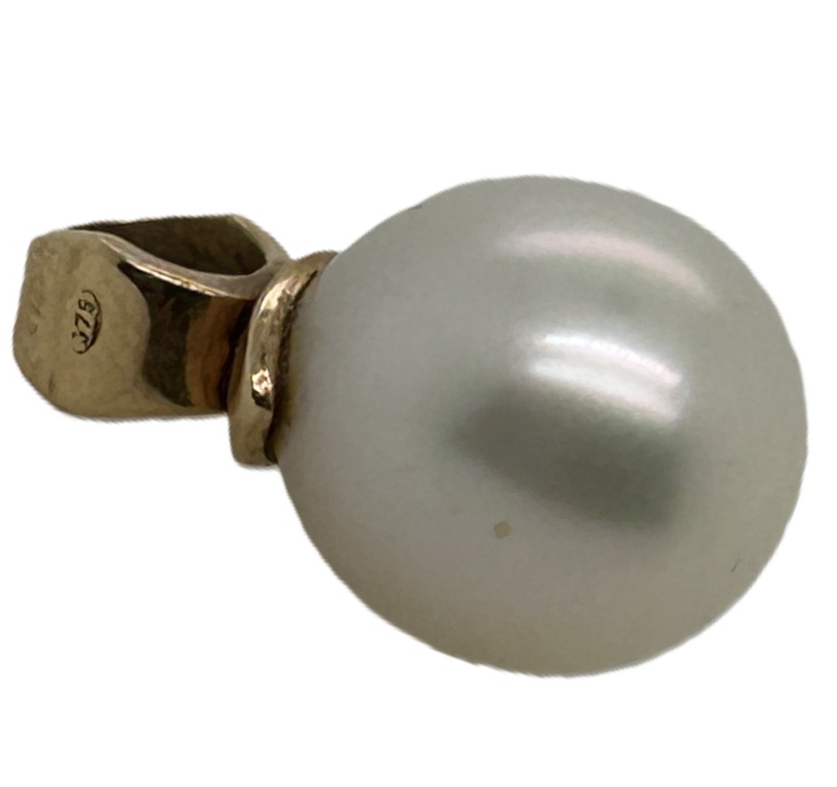 • 12.3-12.22mm oval white pearl with gold loop bale