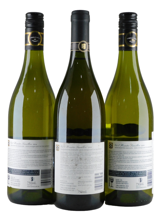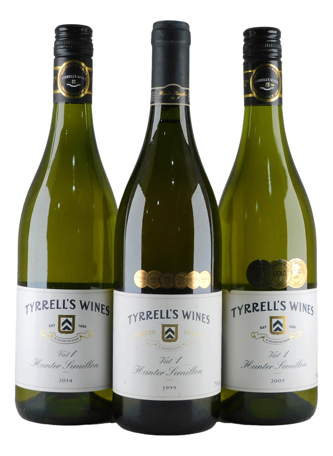 Pack of Tyrrell`s Hunter Semillon Vat 1 1999/2009/2014 (3x 750mL), Hunter Valley, Screwcap Closure (320952-30)