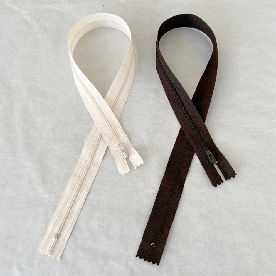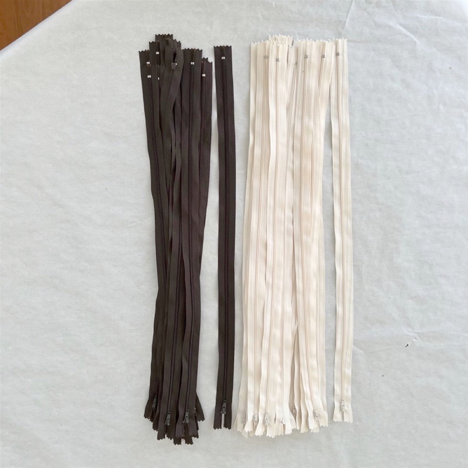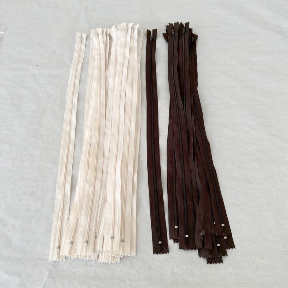 Beige and Dark Brown Closed End Zips for Clothing - 43pcs, 54cm and 54.5cm