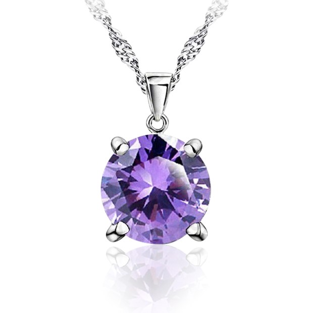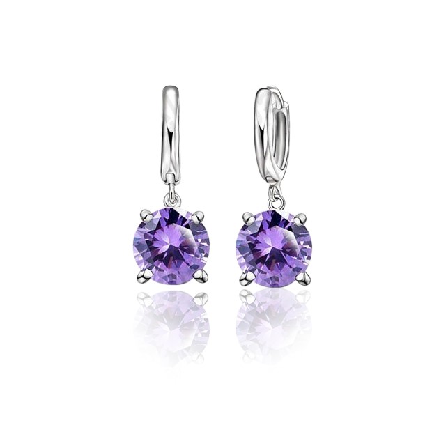 Purple Simulated Diamond Drop Earring & Necklace Set