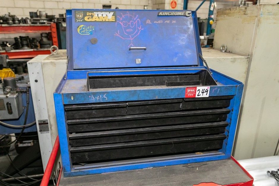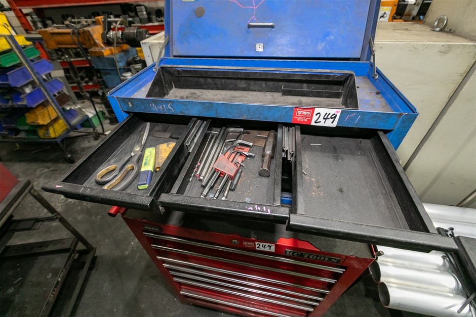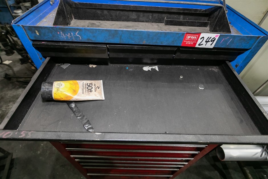 • Powder coated red finish with blue portable tool box