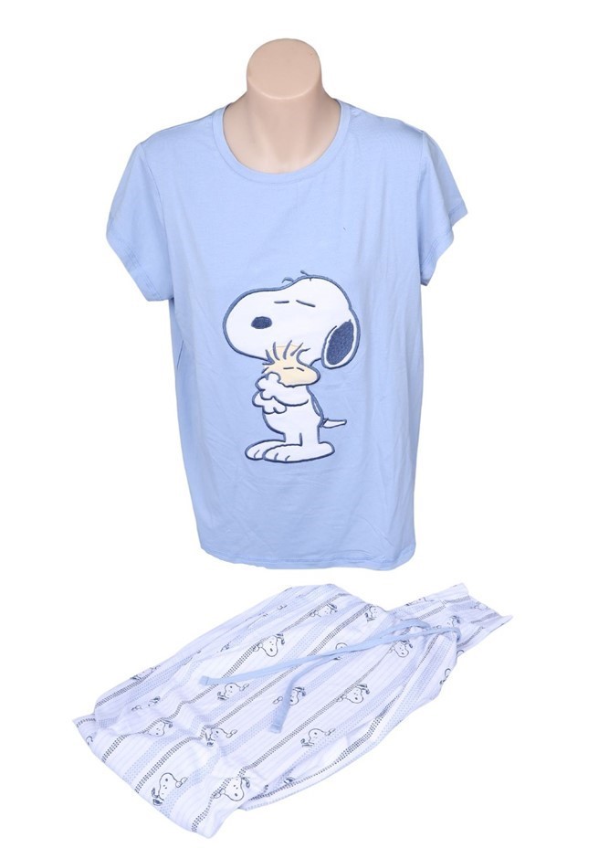 2pc PEANUTS Women`s PJ Set, Size M, 54% Cotton, Light Blue/Snoopy. Buyers Note - Discount Freight Rates Apply to All Regional Areas(Code: 135517-LB-M) (331097-306)