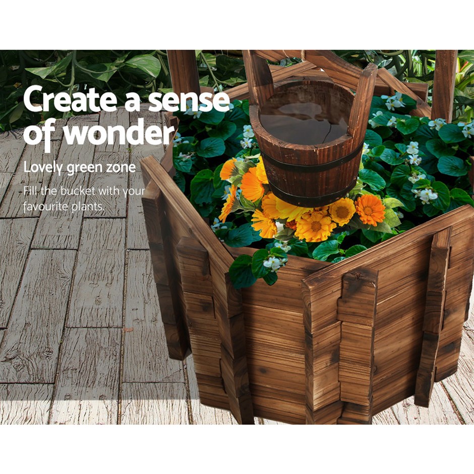 Gardeon Outdoor Garden Ornaments Wishing Well Planter Bucket Wooden Décor