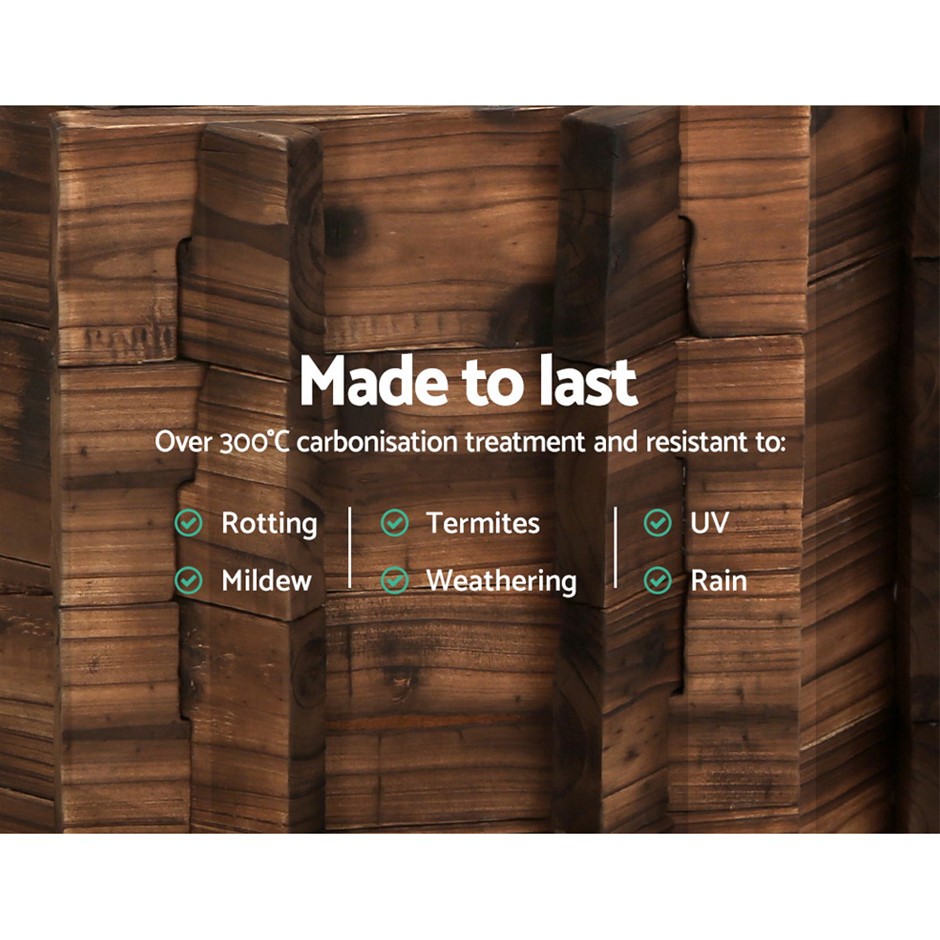 Give your home a rustic feel with our Gardeon Wooden Wishing Well. This lovely collectible evokes plenty of vintage charm as well as complementing your garden décor beautifully. Made from solid fir wood and given an extreme-temperature carbonisation treatment, the wishing well is designed to withstand all the weather elements as well as termites. Better still, the well can also be used as a plant bed, with the bucket as a pot and a decorative roof to shelter your flora from direct heat. The base is also firm and steady and not easily toppled over by strong winds. Not least, this wishing well may just help to make your wishes come true in more ways than one.