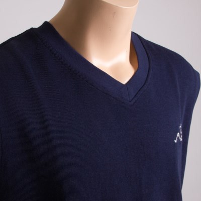 A classic V neck sleeveless jumper made from a soft and comfortable cotton blend which is both warm and breathable.