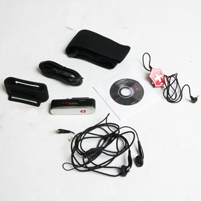 The Swiss Army Knife is a classic setup with a blade, file and scissors. The 1GB MP3 player supports MP3, WMA, WMV and OGG Vorbis files, has an FM stereo radio, a remote control and sports accessories (see below for full specifications).